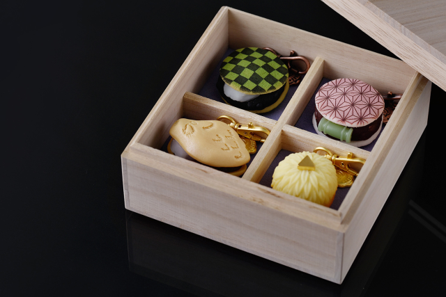 以八位人物的形象設計成和菓子的樣子,適合懸掛在包包上或是鑰匙圈等地方,相當可愛 XD。售價為 8,580 日圓 。