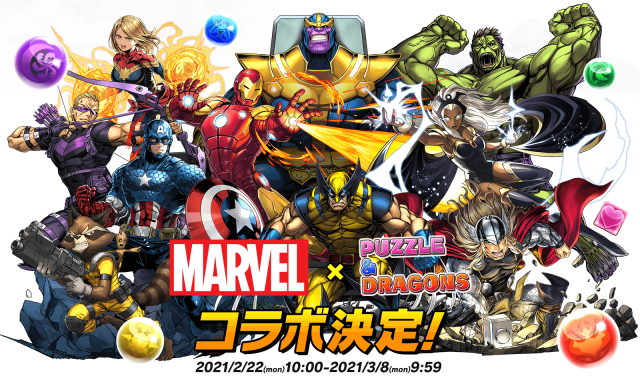 日本電子遊戲公司工合線上娛樂(GungHo Online Entertainment)日前宣布,旗下營運的益智 RPG 手機遊戲《龍族拼圖(Puzzle & Dragons)》(iOS/Android)將與美國《漫威漫畫 Marvel Comics》展開聯名合作,合作活動將於 2021 年 2 月 22 日 10 點開始 ( 日本時間 )。