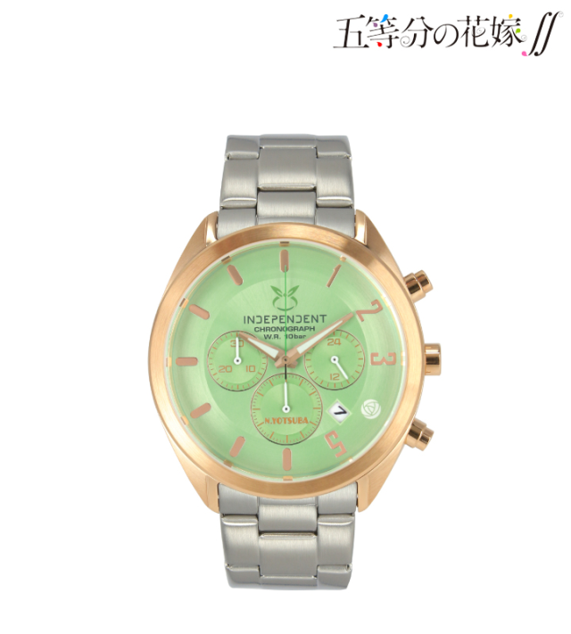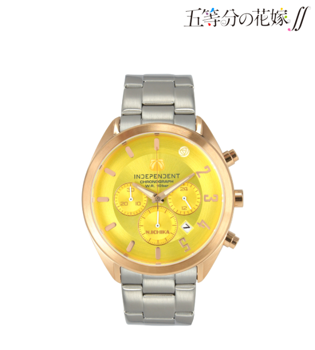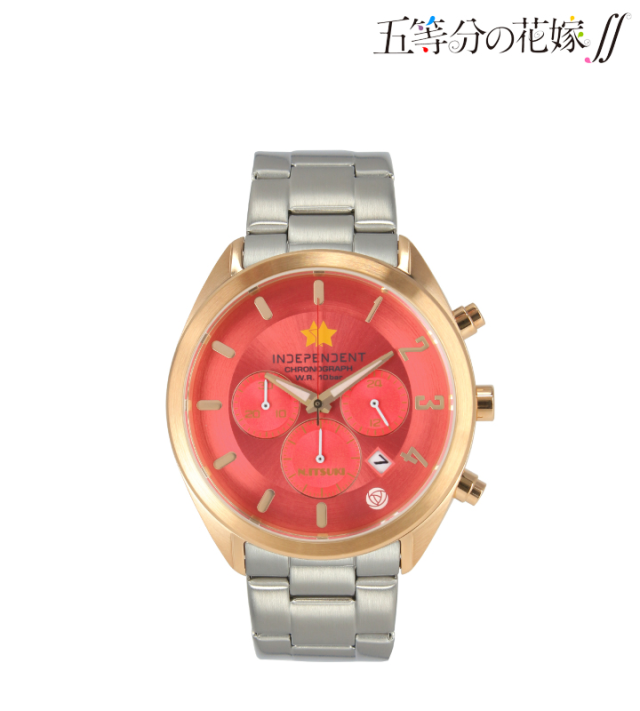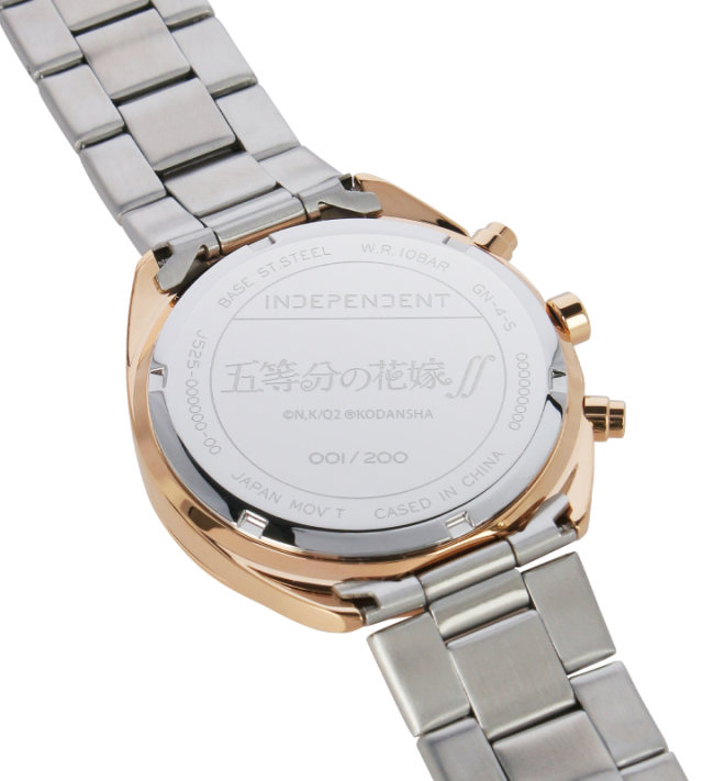 事實上 INDEPENDENT 先前就與不少動漫作品聯名推出商品,包含;《進擊的巨人》、《名偵探柯南》等作品都有合作。這次與動畫《五等分的新娘∬》合作,乘著第二季仍播放中,將五位女角-中野一花、中野二乃、中野三玖、中野四葉與中野五月一齊推出。錶面上都可以在 INDEPENDENT 品牌名稱上看到角色的代表物圖案,錶面主色系也以各別角色所代表的顏色呈現,錶背有限量的數字編號;每個盒裝上也有個別人物的圖案。