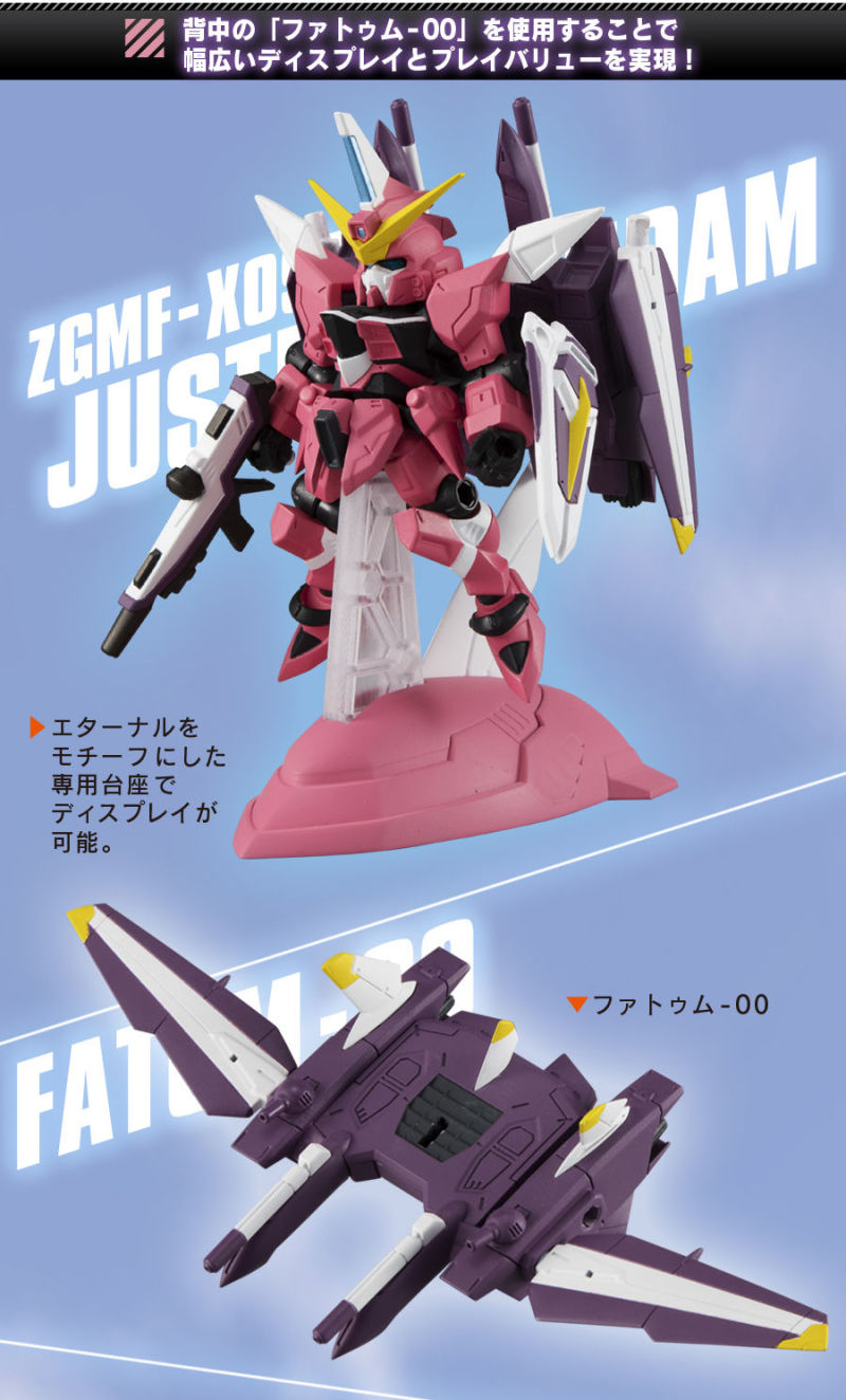 而無人機「Fatum-00」更有與本體同等的巨大尺寸,可搭載於背部再現高機動型態,或利用透明支架承載正義鋼彈再現分離戰法!此外配件中也附上以母艦「永恆號」造型設計的專用台座。