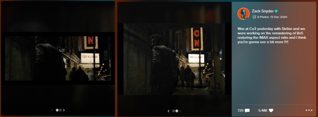 看起來查克史奈德( Zack Snyder )對於 2016 年 《蝙蝠俠對超人:正義曙光》( Batman v Superman: Dawn of Justice )宥於當時的技術,而導致有部分細節沒能讓觀眾看到十分耿耿於懷,因此他在準備推出《查克史奈德之正義聯盟》( Zack Snyder's Justice League )的同時也積極的進行《正義曙光》的重製影碟版,下方就是他在自己的 vero 平台上公布的差異圖(左邊為舊版,右邊為新版):