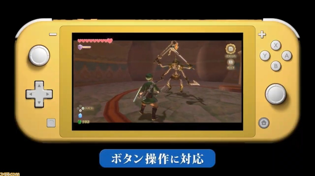 在作為上上世代的家用主機 Wii 專用遊戲的《薩爾達傳說 天空之劍》HD高畫質重製版中,從 Wii 的 Nunchuk 手把改成了 Switch 的 Joy-Con 來操縱劍與盾牌的動作外,也對應相同的按鍵操作,所以不太需要擔心操作鍵改變導致操作不習慣等疑慮。