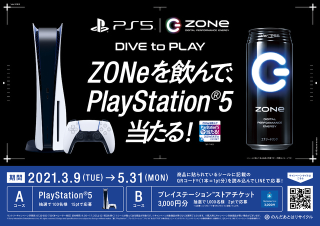 日本能量飲料品牌 ZONe 於今日宣布與遊戲主機 PS5 推出聯名罐裝,採用原先發售中的「ZONe Ver.1.3.9」的口味,將原罐裝上的圖案以 PS5 的電源開關 Logo 呈現,搭配 PS5 著稱的冷冽藍色光芒,將會在日本 2021 年 3 月 16 日起於各大便利商店、超市、藥妝店等同步發售!