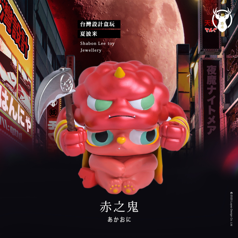 有了青鬼怎麼可以少了赤鬼呢?Miababy搭配赤鬼一樣沒有殺氣呀!!手上武器還有作者小巧思Shabon Lee toy的logo標章,披風拿下後不就是可愛的小maibaby嗎?