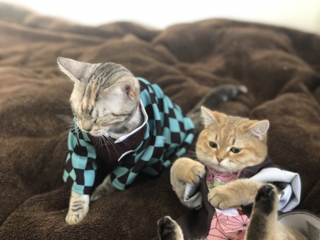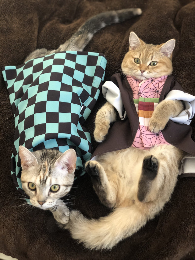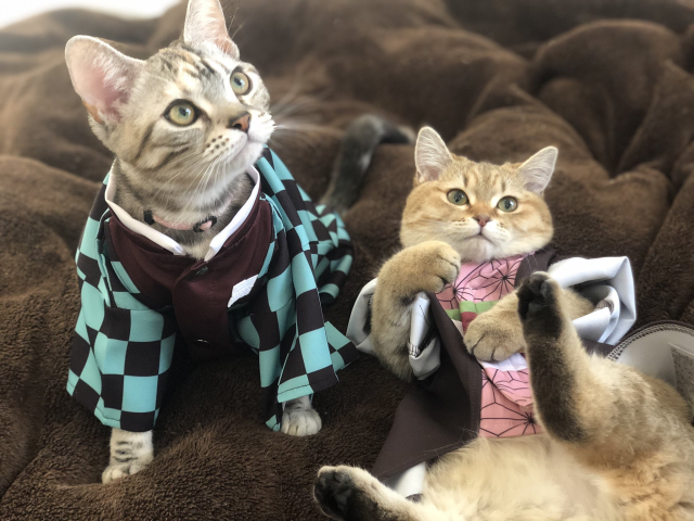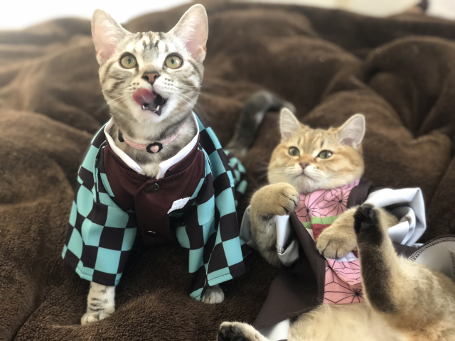 家裡有養貓咪的網友應該不少吧~不知道各位是否會替自己的愛貓著裝呢?日本網友 シリアルキャッツ 在推特分享了自己替自家的愛貓們穿上《鬼滅之刃》中-竈門炭治郎&禰豆子兄妹的羽織服裝,受到網友好評 : 「這麼可愛的鬼殺隊哪裡找!」,可愛的貓咪也衝上推特趨勢上,看來動物的 Cosplay 也是很有人氣的 XD。