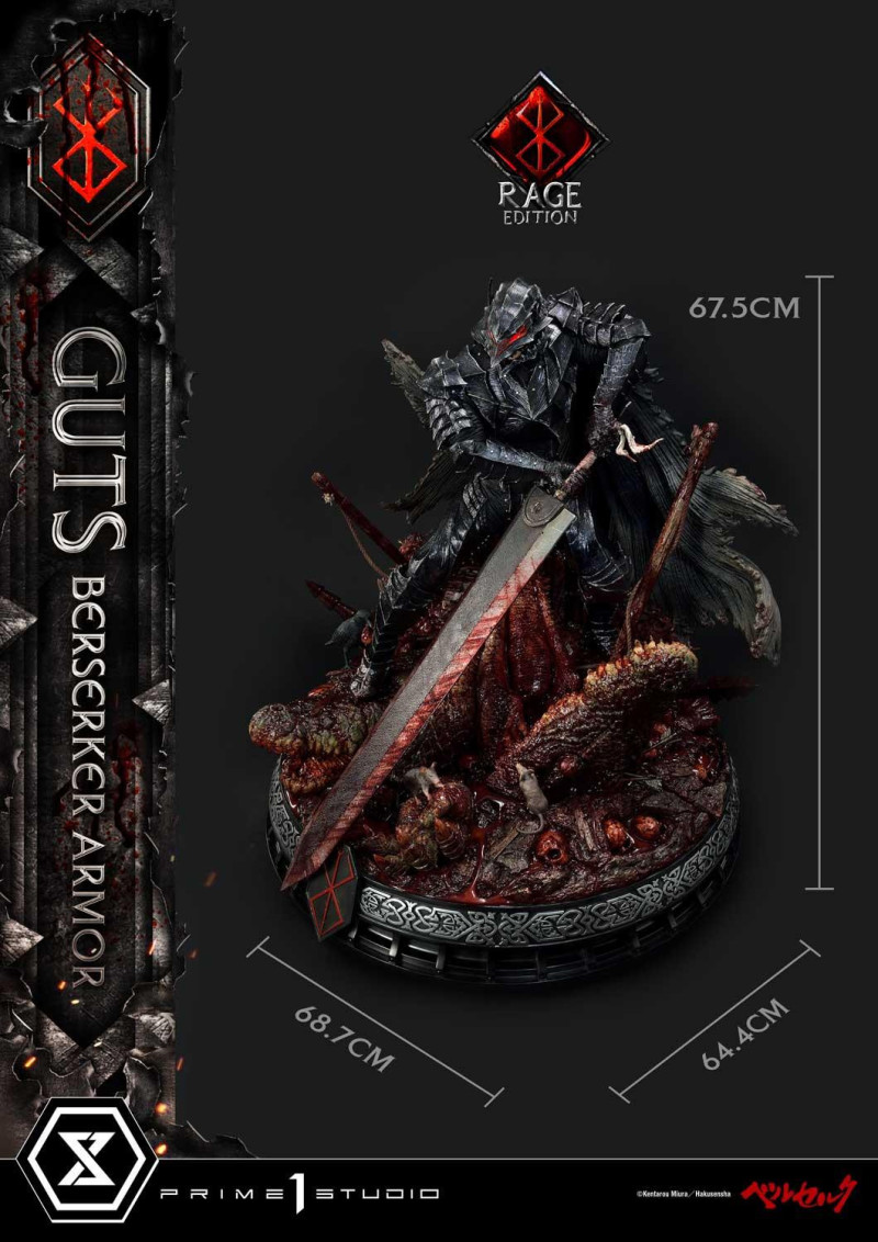 旗下作品的尺寸、細節、價格都是超高級的日本高端雕像大廠 Prime 1 Studio 日前在旗下的「Ultimate Premium Masterline」系列發表了出自《烙印勇士》的新作「凱茲 狂戰士鎧甲」(ガッツ狂戦士の甲冑)!而且還分別推出了「Rage 怒り(憤怒)」、「Unleash 解放」兩種狀態,並都將同步發行普通版與 DX版,本篇將帶來編號 UPMBR-18 的憤怒版本。