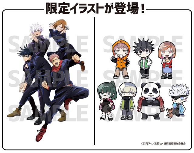 這次採用原創的人物繪圖,專屬於 LAWSON 活動。t除了穿上咒術高專制服的主角群外,還有 Q 版的東京咒術高專角色們,還穿上了日常休閒服的模樣十分可愛~