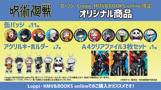 週邊商品皆為 LAWSON、Loppi 與 HMV&BOOKS 線上商店限定,分別有徽章、壓克力鑰匙圈與 A4 資料夾組。
