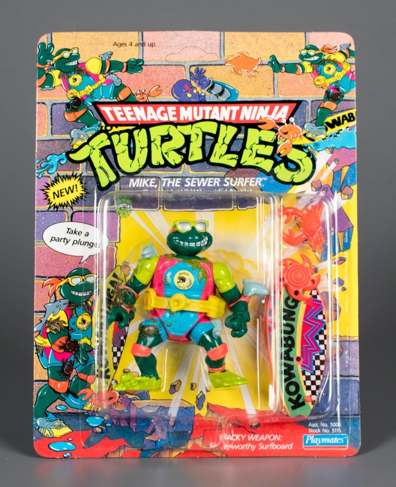 ▼ 由 Playmates 製作的「Mike, The Sewer Surfer」吊卡玩具。
