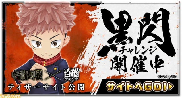 而《白貓Project》官方也為了這次的合作聯動活動,在官方網站上製作了「黑閃挑戰」這個小遊戲,只要在畫面中出現「決」這個字的瞬間按下去,虎杖就會使出黑閃,然後就可以挑戰下一次,直到失敗為止,只要將挑戰成功的數據分享到推特就有機會可以抽實體獎品。