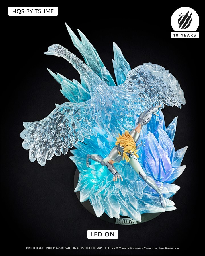 擅長打造電影、動漫角色雕像,以精湛工藝與華麗場景聞名的盧森堡頂尖雕像團隊 Tsume-Art,在不死鳥 一輝、巨蟹座 迪斯馬斯克等作品後,旗下「High Quality Statues (HQS)」系列又將推出以《聖鬥士星矢》為設計的新作:「天鵝座 冰河」(Cygnus Hyoga)1/6 比例雕像,全球限量 2500 體,參考售價為 629.00 歐元,預計將於 2022 年上半年度發售。