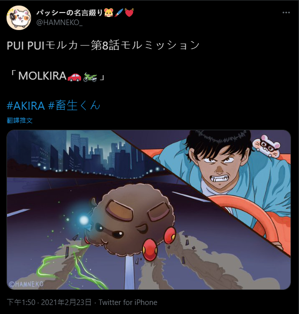 也因為如此,該集內容成為了今日Twitter熱搜,不少網友們不僅將《阿基拉》的經典畫面與《天竺鼠車車》第八集做出了超有趣對比,更是久違地帶動那些曾經致敬過《阿基拉》的動畫場面,當然免不了還有繪師們的創作啦!