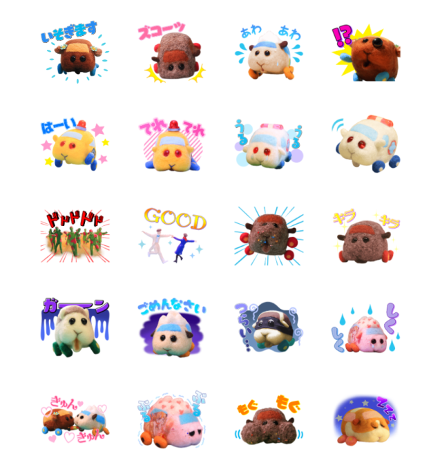 而也隨著該動畫的熱潮下,不僅在粉絲敲碗之下,終於在幾週前推出了《天竺鼠車車》絨毛玩偶外,官方也於今日正式推出了LINE貼圖,來給喜歡這部羊毛氈動畫的粉絲朋友們購買。