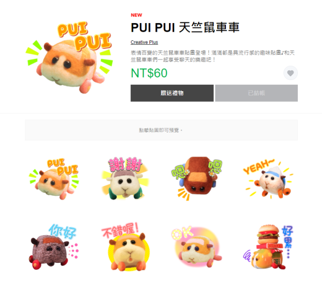 也當然在官方將貼圖上架至LINE後,期待已久的粉絲們便立即點選手機購買,並在《天竺鼠車車》官方Twitter的留言底下,分享他們已購買的截圖,並且直呼超可愛,更有人進一步向官方懇求,下一次希望能夠推出有聲貼圖,畢竟PUI PUI叫的聲音實在是太療癒了啦~