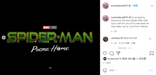 就在霍蘭德公開了該電影的完整片名不久,飾演「MJ」的千黛亞(Zendaya)就吃驚地在Instagram留言底下回應了一句「蝦米」。事實上,千黛亞也同樣公開了本次《蜘蛛人3》電影的副標題,只不過她所拿到的片名並不是叫做「Phone Home」,而是「Home Slice」。