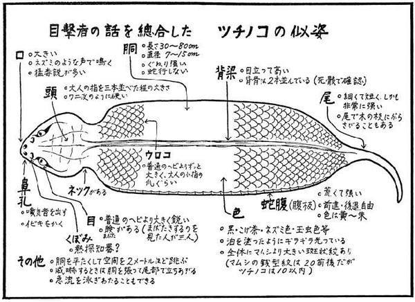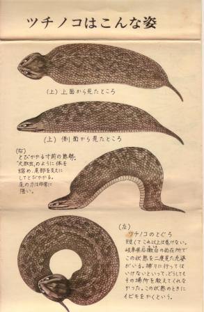 8世紀的《古事記》、18 世紀的《和漢三才図会》、19 世紀的《信濃奇勝録》等等古書上,都有關於土龍的記載,而且這些歷史重要文物裡紀錄的土龍,幾乎造型一模一樣:土龍身長約 30~80 公分;頭部如眼鏡蛇一般是三角形,但身軀中段卻呈現 7~15 公分如同比目魚一般的扁平狀,看起來就像一條中段被卡車輾平的蛇;但是土龍背部有兩處高高的隆起,除此之外,土龍其他部位都跟蛇無異,身上有斑紋鱗片;顏色通常是黑色、土黃與茶色混合。