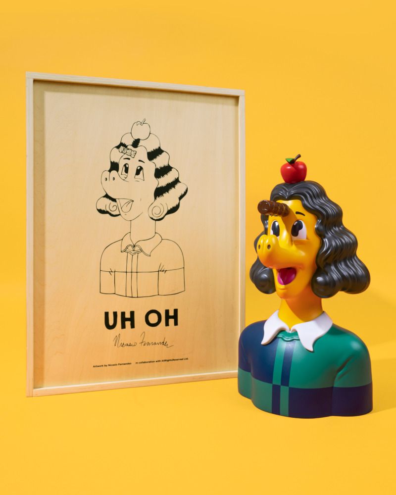 PROJECT》by AllRightsReserved,攜手發佈Fernandez 首個限量拆信刀雕塑《Uh Oh》以及花瓶雕塑《Blooming》,以其代表性角色通過超現實風格與怪異形象,探討現實荒誕百態,以戲謔方式面對荒謬人生。