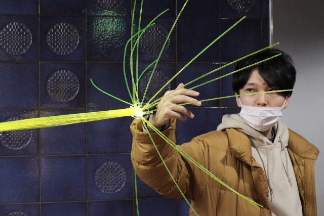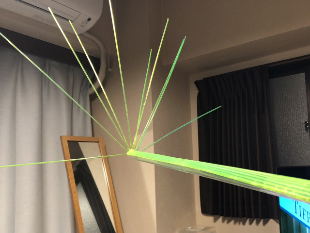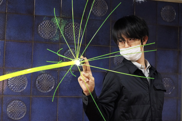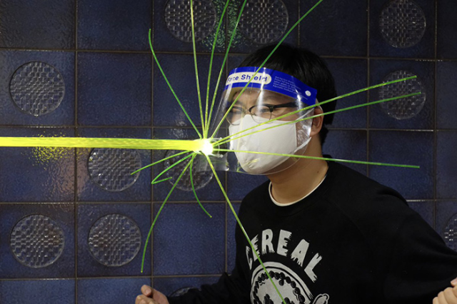 來自大阪的創作團體ゆるつく(@yurutsuku)發明了一項戴上就十分厲害的物品,那就是「光束反彈面罩」(ビームをガードするフェイスガード),顧名思義就是能把光束炮反彈出去的面罩,不過這只是看起來,實際上是利用壓克力管加熱弄彎並黏接成光束炮的樣子然後裝在一般的防護面罩上,這樣就變得很像敵人發射的光束炮被你的「無敵防護」彈開了一樣。