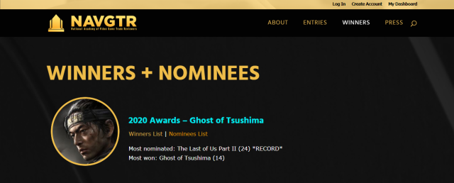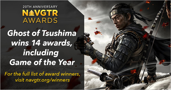 最終經過評選,《對馬戰鬼》擁攬14座獎項,包含傑出動畫、傑出角色設計及最重要的年度最佳遊戲躍升為本屆冠軍。《最後生還者 2》則獲8項成為本屆亞軍。