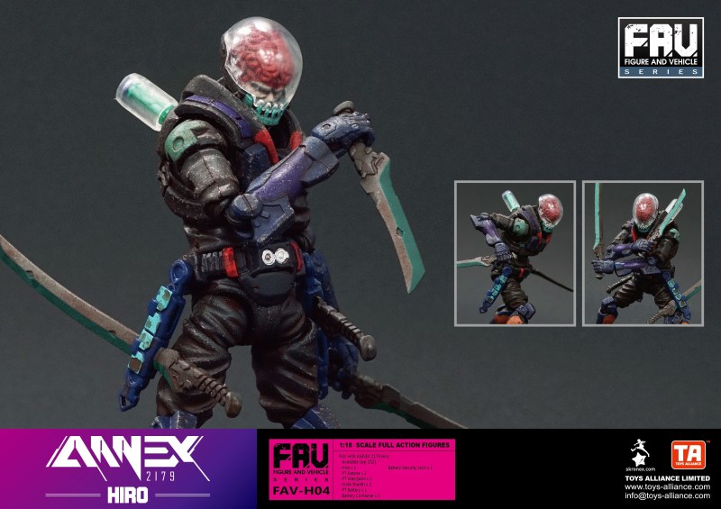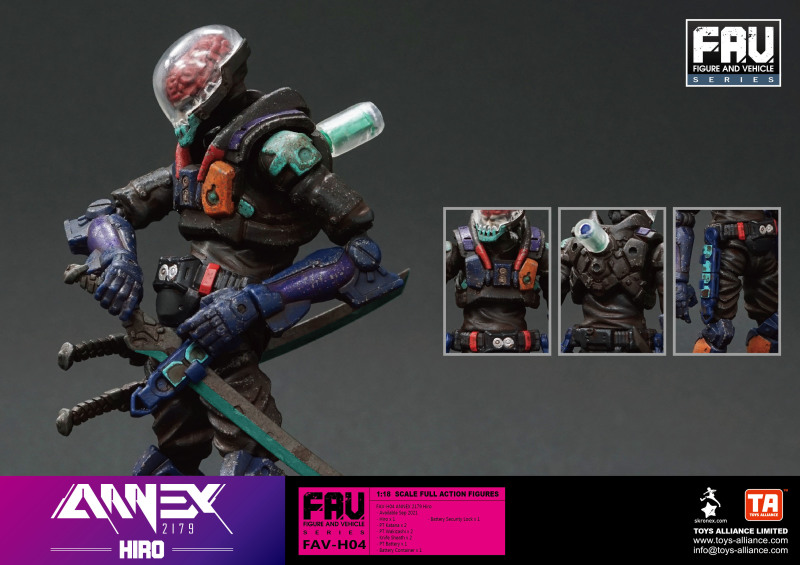 香港玩具廠牌 TOYS ALLIANCE 旗下的「Figures And Vehicles(FAV)」品牌於今(25)日發表了新系列《ANNEX 2179》的兩款作品「FAV-H04 弘」與「FAV-H05 虛空」,本篇將帶來「弘」(Hiro)的 1/18 比例可動人偶商品情報。