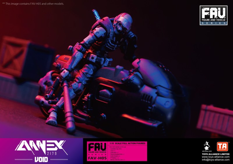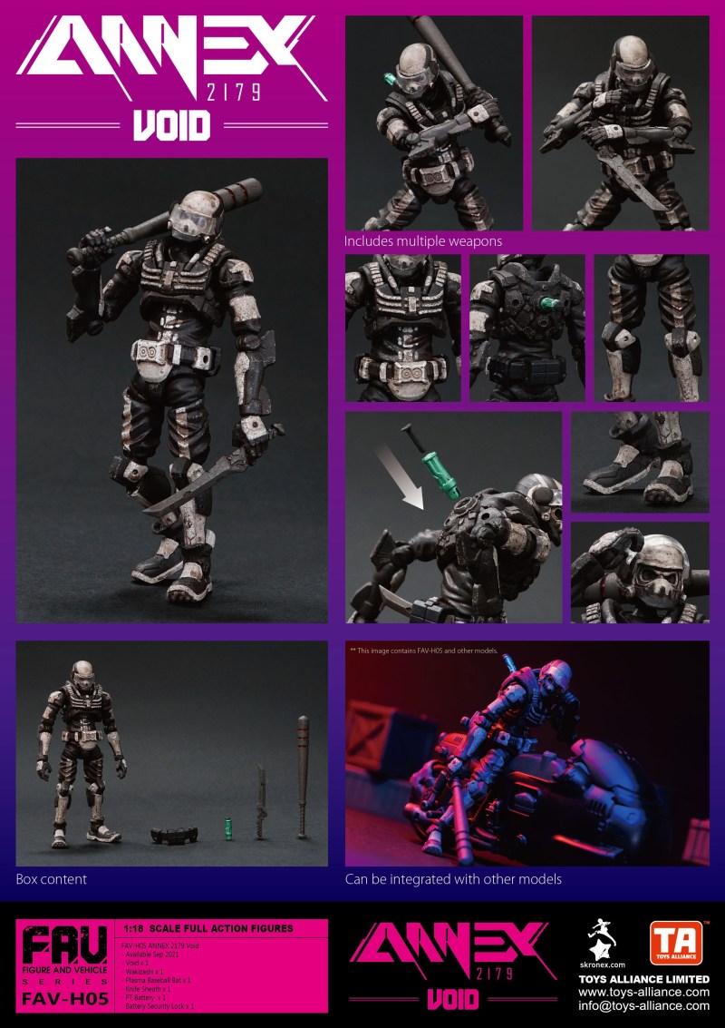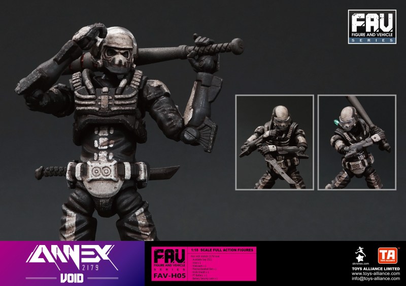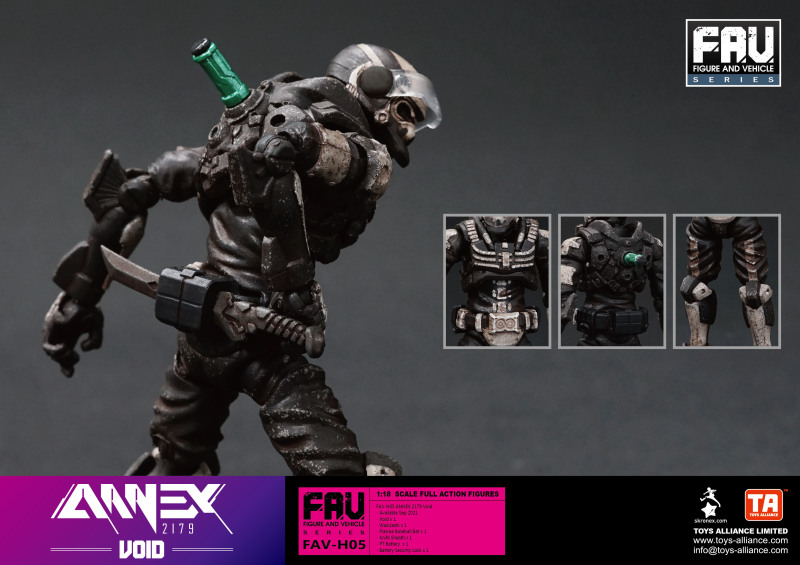 香港玩具廠牌 TOYS ALLIANCE 旗下的「Figures And Vehicles(FAV)」品牌於今(25)日發表了新系列《ANNEX 2179》的兩款作品「FAV-H04 弘」與「FAV-H05 虛空」,本篇將帶來「虛空」(Void)的 1/18 比例可動人偶商品情報。