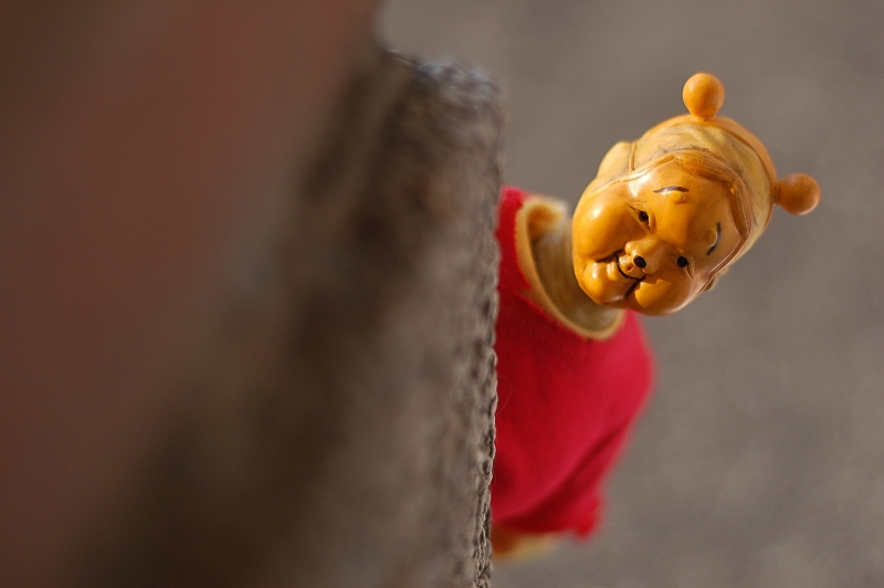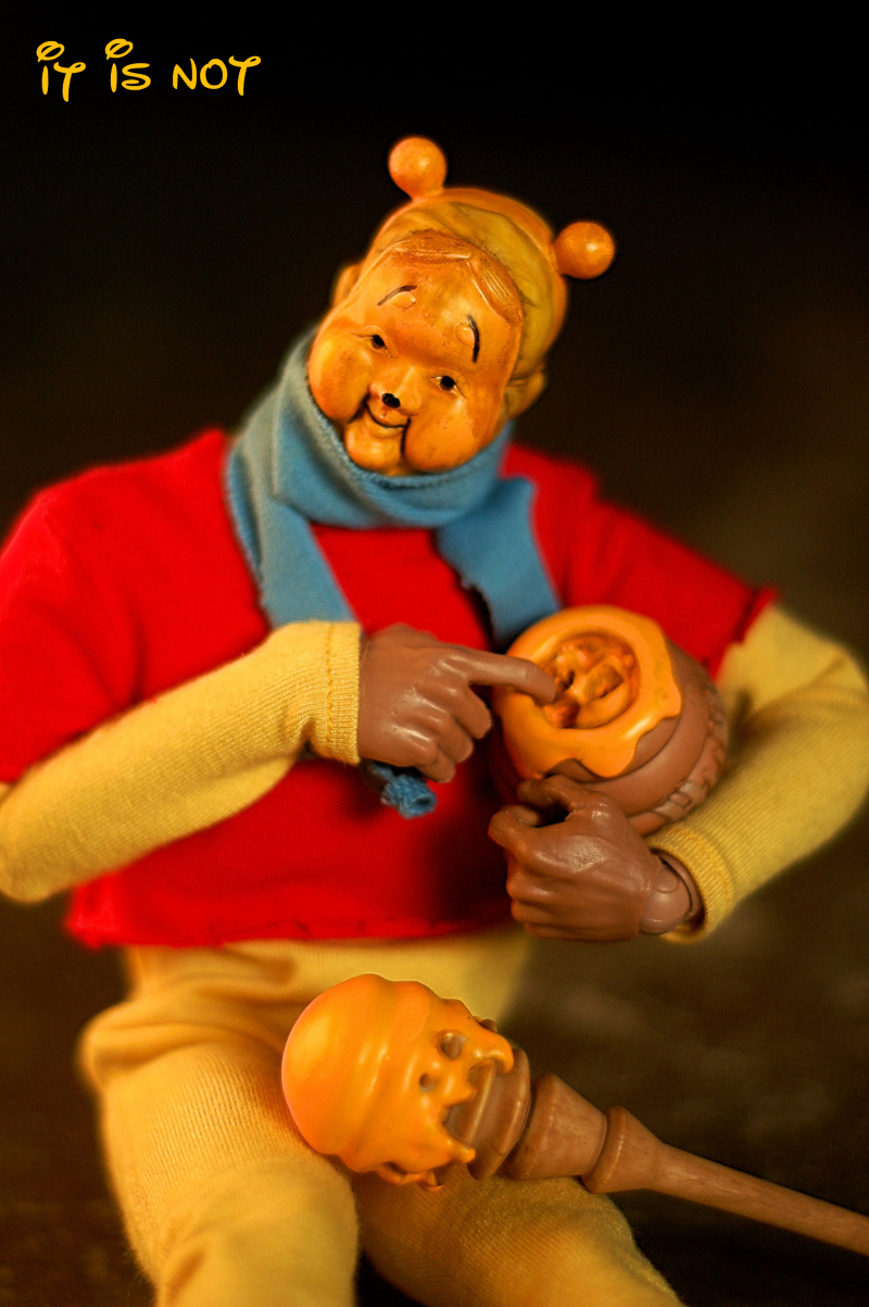 拍完照片後,意猶未盡! 又再增加了維尼最愛的蜂蜜罐和沾蜂蜜的木棒~