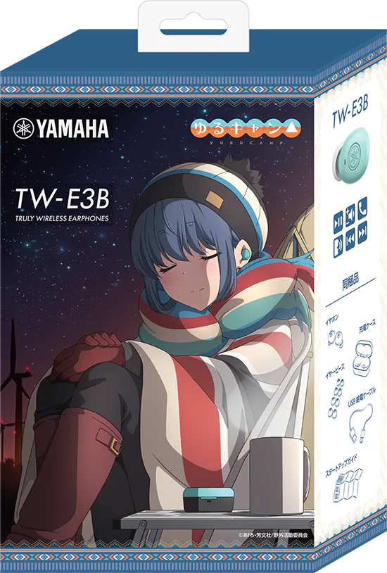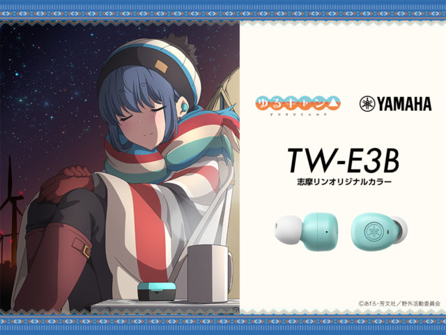 現為世界上最大的樂器生產商山葉公司(ヤマハ株式會社),近日釋出與現正播映動畫第 2 季《搖曳露營△》合作,推出以人氣角色 「志摩凛」為主題的真無線耳機,售價為 13,900 日圓,將於日本 2021 年 4 月 9 日發售。