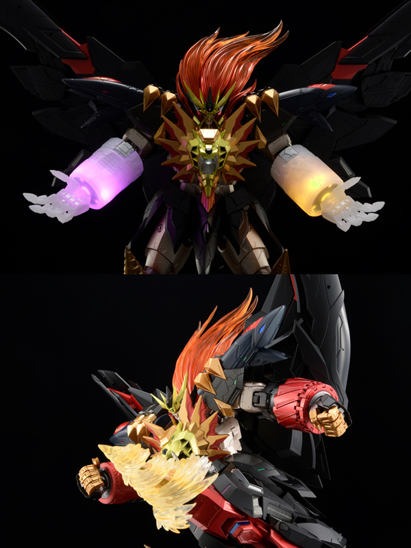 而這次推出的「擴充配件組」更強化了始源我王凱牙的可玩性,包含大量的武裝與特效零件,能夠再現防禦光罩、破壞飛拳、螺旋鑽頭、直線鑽頭、Will Knife、螺栓起子、螺栓射出、左右手發出不同光芒的「地獄與天堂」特效、於霸界王新公開的武裝「Galeoria Road」,以及能裝在雙翼的華麗「光之翼」特效!