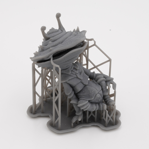 在先前所推出的坐姿卡內貢後,這次「DGK 幻想怪獸Goro 卡內貢 Stand Up .ver」3D列印模型,以生動的站立姿態呈現,並且再現卡內貢皮膚的皺摺、後頸的尖刺與拉鍊狀的牙齒等細節,組裝後尺寸約 7 公分,材質採用光聚合樹脂,帶有3D列印的支撐架,須自行處理後接連部分後再進行塗裝。