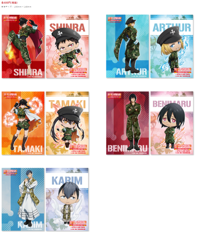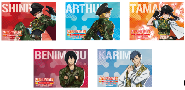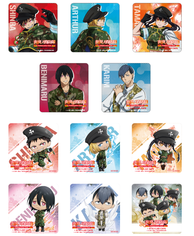 這也是首次 OTA★ラボ CAFE 進駐機場航廈開設店鋪,這次與《炎炎消防隊》合作,設計了以迷彩軍裝為主題的人物視覺圖,可以看到人物都穿上了迷彩設計的消防服,是不是很帥呢 XD。( 小編喜歡的環古達好帥氣 ! )