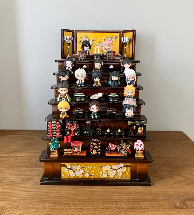 除了天竺鼠外,是事實上先前也有日本推主普通人/まるまる(@fsjohnjohn),在Twitter上分享了《鬼滅之刃》的女兒節人偶擺設。有趣的是,去年以前家裡在過這傳統節慶時,都還是遵循著習俗擺放著雛人形,沒想到在迷上了《鬼滅之刃》後,今年女兒節倒成了該動畫角色們的主場了XD