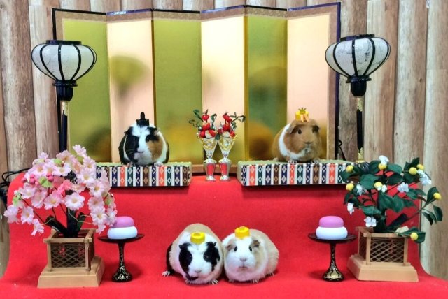 例如說日本千葉市動物公園,在這一年一度的傳統節慶這天,曬出了天竺鼠版本的女兒節祭壇,而且剛好又能夠對應近日話題正火熱的超人氣動畫《天竺鼠車車》,鼠鼠們乖乖地待在檯座的模樣實在是超級可愛的!