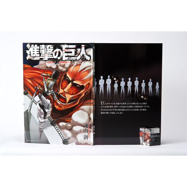 今日講談社官方宣布,將為旗下漫畫《進擊的巨人》推出號稱是世界上最大的「巨人專用單行本漫畫」,不僅重現最經典的第一卷封面,並且確定將收錄該漫畫的第一話與第二話內容。出版社官方也有趣地表示,該產品以邁向金氏世界紀錄為目標!