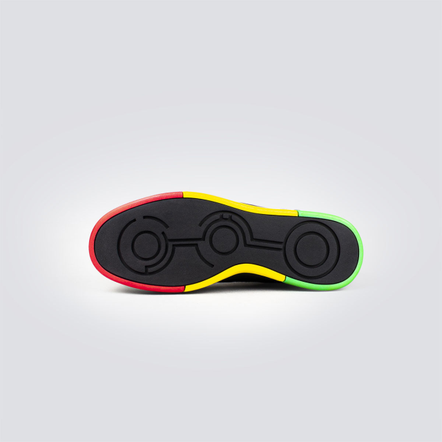 本次推出《假面騎士OOO》運動鞋為品牌線上第四款鞋款,大膽使用 OOO 身上的綠紅黃配色配置在鞋底與鞋帶上,可以看到鞋底的外底周邊被三個顏色分割開來,配上非常鮮豔的鞋帶,讓整雙黑色為基底的鞋子突然變成十分亮眼。