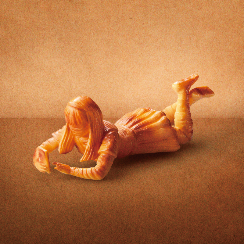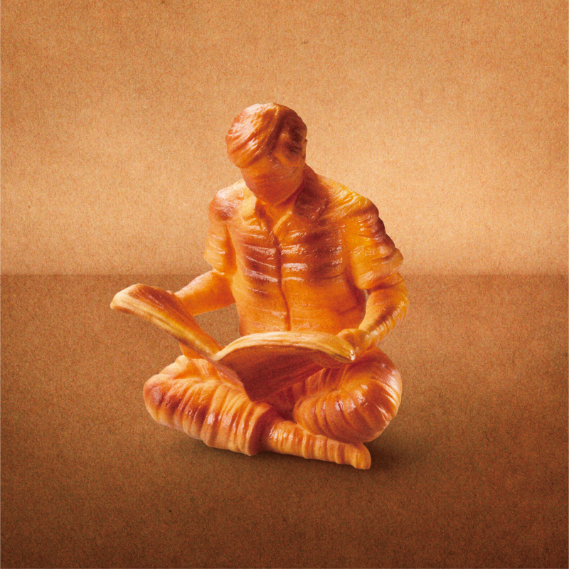 在一間烘培坊「黒和堂」的窯烤爐深處,有一個由可頌麵包組成的家庭,那裡非常溫暖、舒適,而且沒有任何人可以找得到!黑和先生的家庭看起來幸福美滿,而且感覺非常香~這個家的構成包含父親、母親、姊姊、弟弟,跟一隻可愛的小狗,除了每個家庭成員的日常動作十分寫實之外,可頌麵包一層一層的質地、奶油烘烤出來的光澤感,以及多個部位的焦黃漸層色都非常細緻,但沒有表情的臉,偶爾瞥到一下還是會有點怕怕的呢。