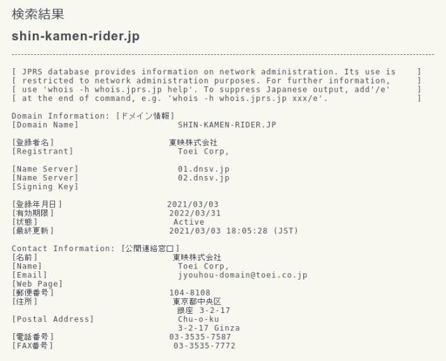 目前只能得出東映已經登記好這個網站,還不能完全確定是《真 假面騎士》要重製,更多情報還請耐心等待東映進一步的公開。