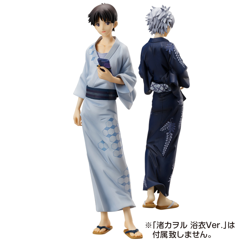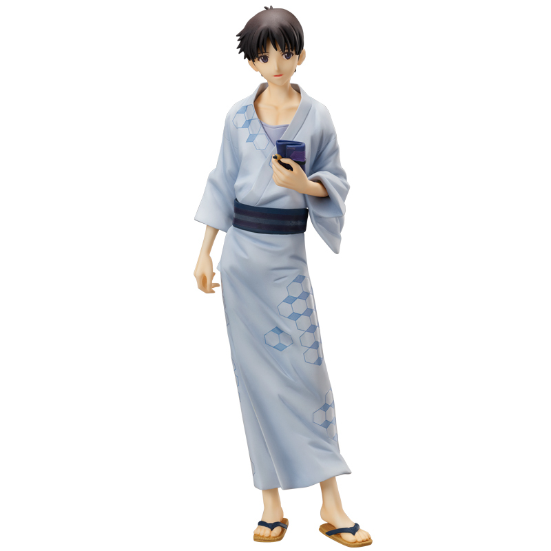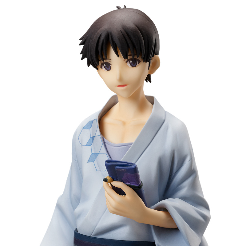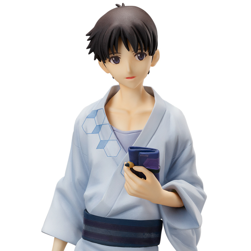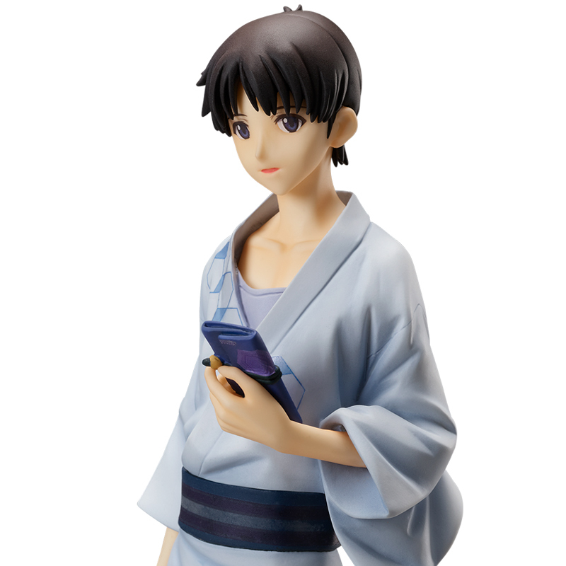 有別於《福音戰士新劇場版》嚴肅的世界觀,這次 FREEing 以休閒、充滿夏日祭典氛圍的浴衣造型,將劇中角色立體化~首彈推出的「碇真嗣 浴衣Ver.」1/8比例模型,尺寸約高 22 公分,貞嗣穿上一身藍灰色浴衣,浴衣精緻的皺褶更顯修長的身形;雖然加上灰色內裡,但仍露出優美的鎖骨線條。手上拿著的和風錢包與腳下的草履皆細膩刻劃、仔細塗裝。臉上帶著淡淡溫柔的笑容,可以與「渚薰 浴衣Ver.」共同擺飾時為成對造型,請務必要同時收藏呀!