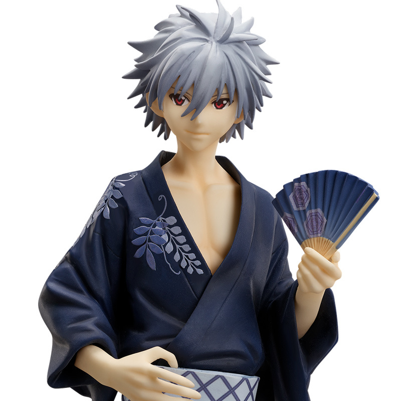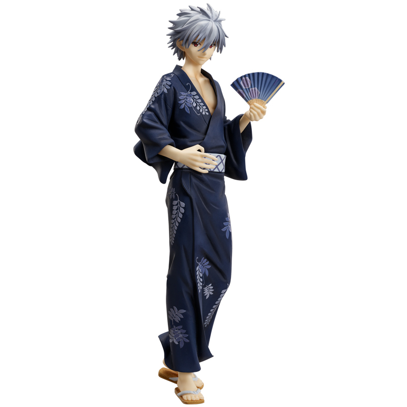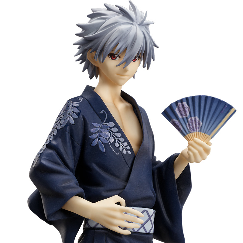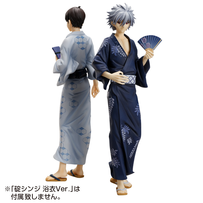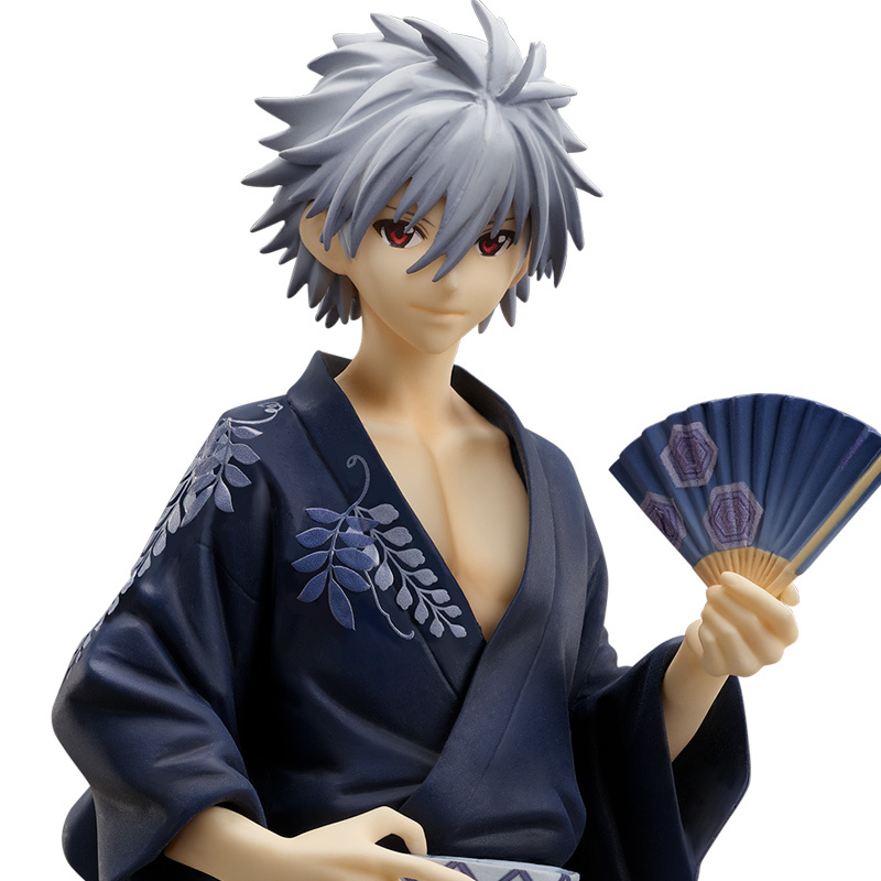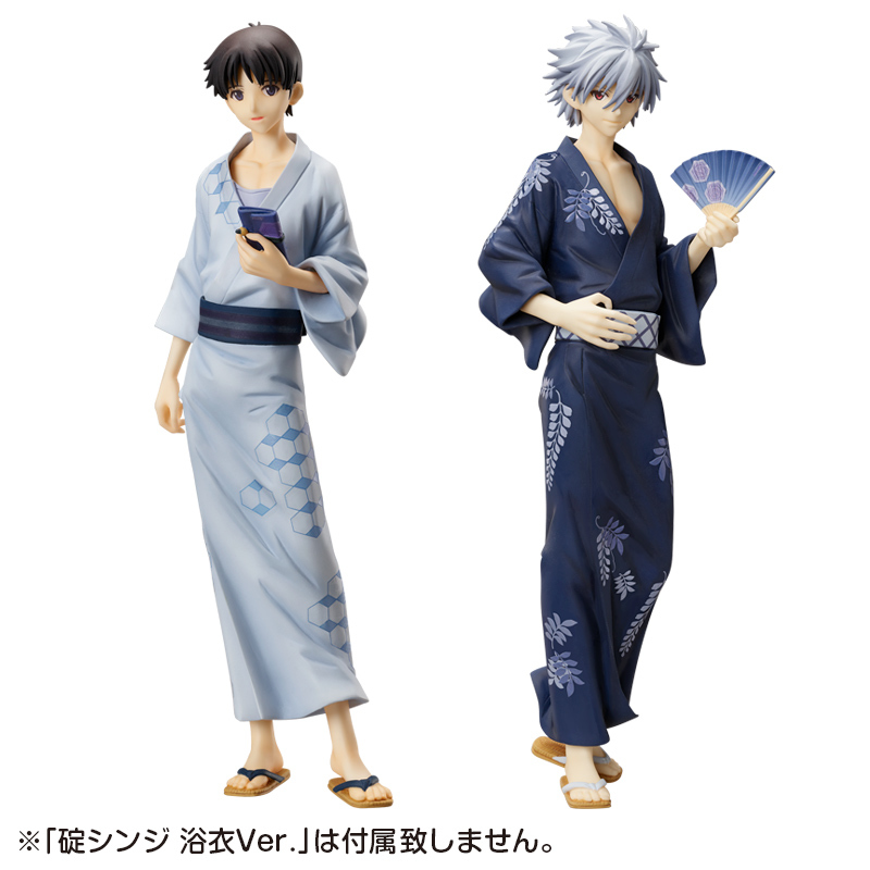 有別於《福音戰士新劇場版》嚴肅的世界觀,這次 FREEing 以休閒、充滿夏日祭典氛圍的浴衣造型,將劇中角色立體化~首波推出的「渚薰 浴衣Ver.」1/8比例模型,尺寸約高 225 mm,溫柔的渚薰穿上深色浴衣,手上拿著紙扇,搭配一抹淡淡笑容與敞露的胸膛線條,更凸顯出他的神祕氣質;浴衣服輕貼著渚薰修長又纖細的身材,刻劃出生動的皺褶,從各角度欣賞都相當~與「碇真嗣 浴衣Ver.」共同擺飾時為成對造型吧!