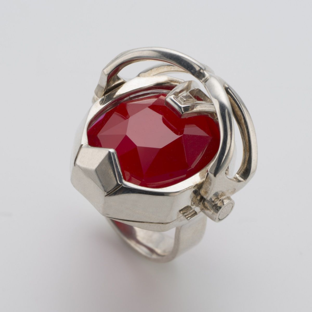這次選用的是火焰的魔法指環,嵌上巨大的紅色寶石,配上 925 純銀的指環本體,上方的銀製保護蓋可以移動,露出紅色寶石。感覺戴上就充滿能量阿 ( 中二魂爆發 ),萬代應該要設計個會發出「Flame!Please!Hi、Hi、HiHiHi」音效的才對啊 XD。