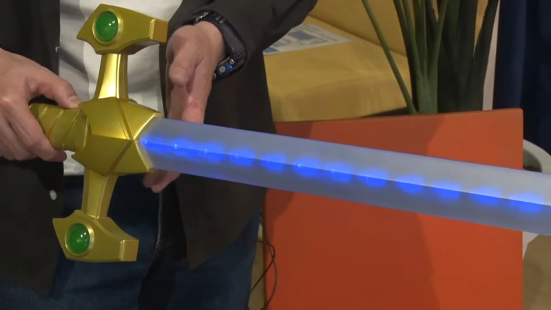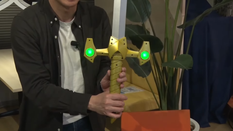 「1/20比例 封魔劍」擁有全長 108 公分巨大尺寸,不僅厚重的造型與色彩徹底還原,更內藏豐富的聲光效果!劍身內藏 LED 燈發光機構,可切換紅、藍兩色光源再現劍技『亂舞太刀』。音效則有多種版本的賽巴斯塔主題曲《熱風!疾風!賽巴斯塔》以及聲優綠川光錄製的多種正樹台詞!