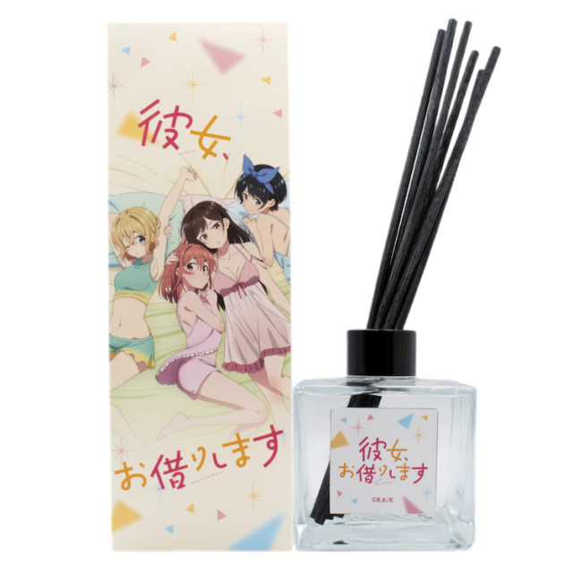 最後是香氛棒,只有出一款,是以四位女角色齊聚一堂的圖為包裝,香氛瓶上只有印著《出租女友》的LOGO圖樣,可以想像成四位女主聚集在一起共同散發出的香氣,內容量有 200 毫升,價格為 2500 日圓(未稅)。