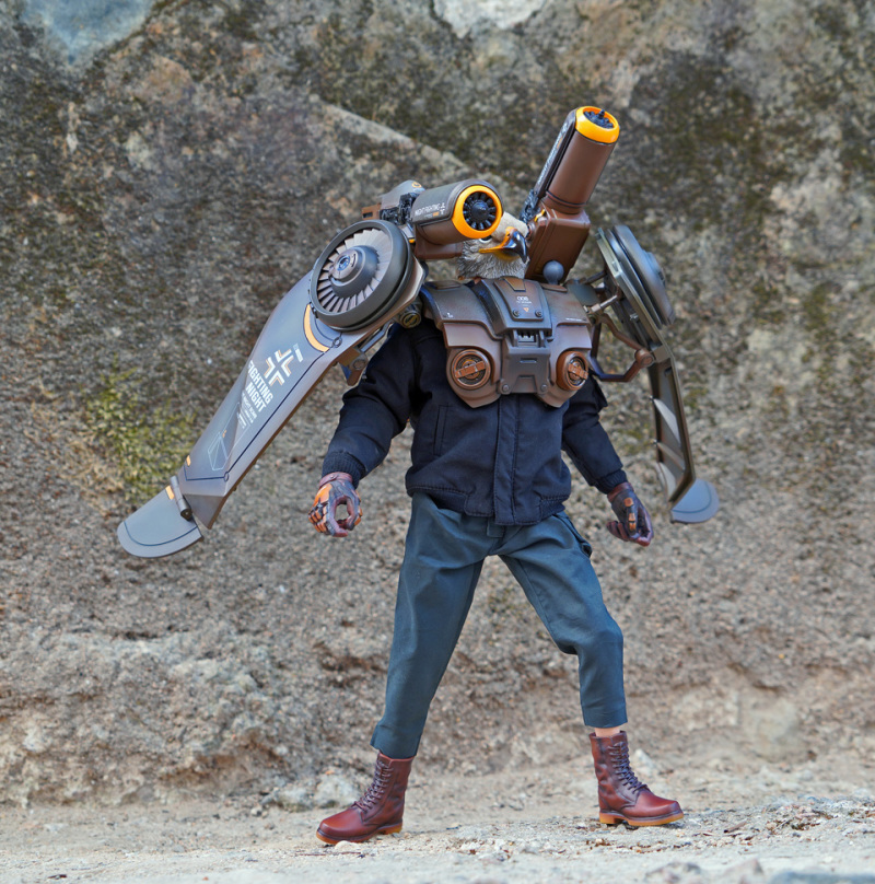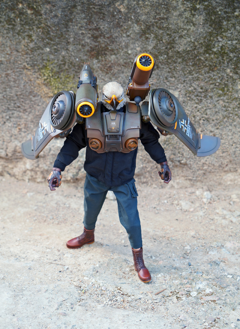 須要改善的地方嘛...... 因造型問題主体不用台座的話站著也頗為吃力,別惶論配上飛行器了...... 另因其他造型手欠奉,故擺姿勢時只有兩只手掌顯得十分不自然。希望日後廠方能夠提供多款手形可供更換及附設台座可方便擺設。另外肩部大砲組件對上臂/肩膀的活動有一定影響,而 Revotech 的關節亦較礙眼。最後是提醒各位玩家,因部分物料以類似首辦件製作,故十分脆弱。鷹咀、機翼、鎗柄及飛行器等為高危位置,小心!