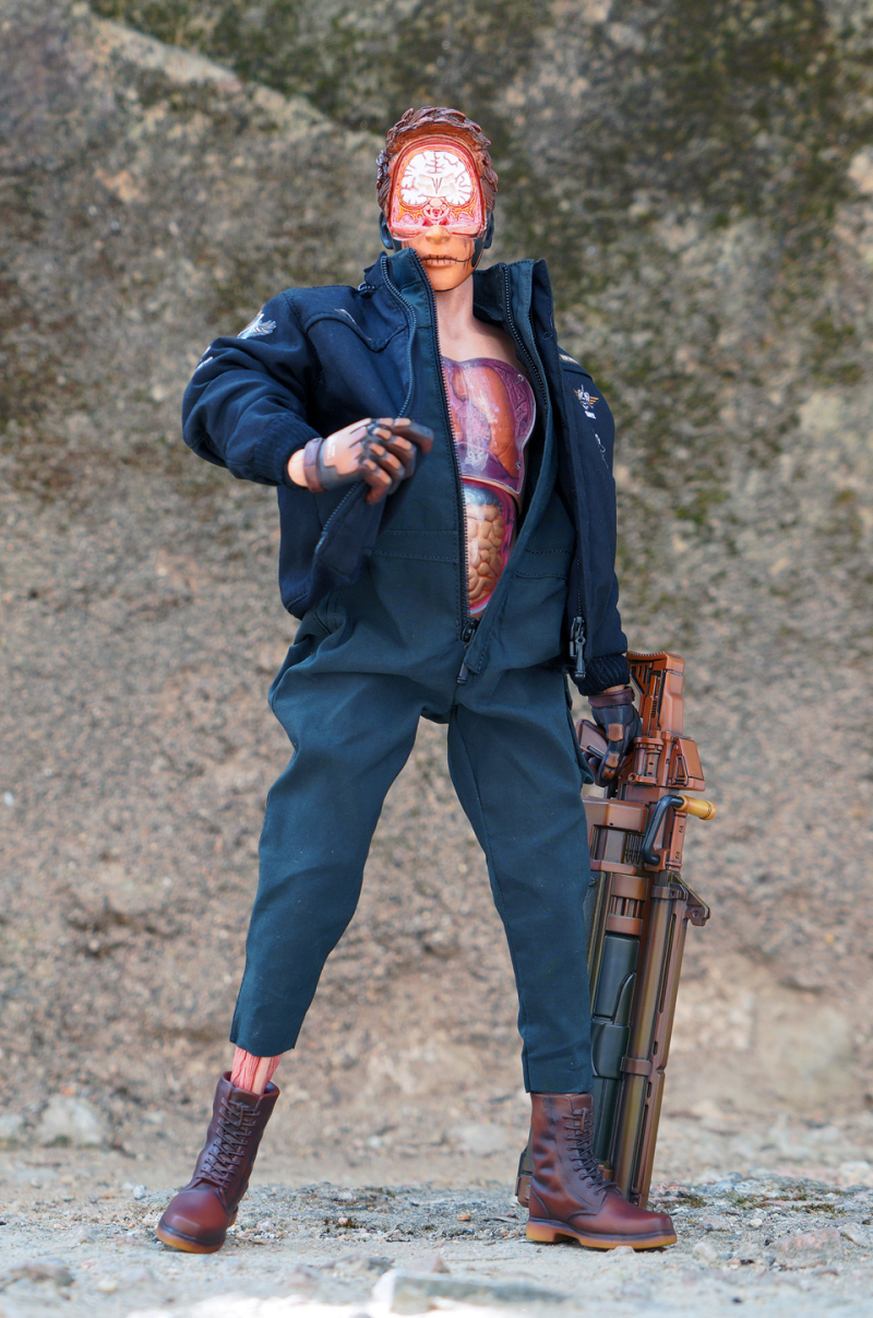 外型的確非常討好。上色及 QC 不俗。衣服及外套的剪裁很好,頭部有人體橫切面、小腿及胸腹內構等 "賣點",讚!本體的可動性一般!關節鬆緊度一般。大部分擬人的姿態亦可以擺出,惟頭與頸的接口位太窄,影響了頭部的活動。