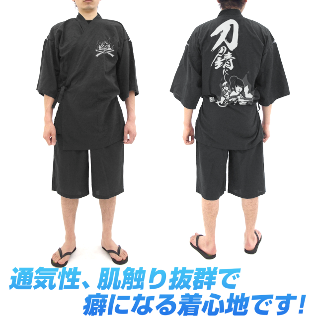 本款甚平套裝在上衣正面左胸處放上即將被志摩凛砍擊的柴火 XD,附上短褲供整套穿著,絕佳的透氣性與舒適感,相當適合夏季穿著。