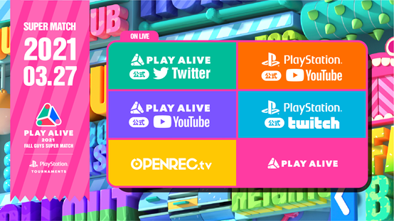 Sony在2021年的《PLAY ALIVE》大會中贊助電競項目,其中包含PS4的知名競跑遊戲《糖豆人》(FALL GUYS),將以Vtuber、知名直播主等為首四人組隊,共襄盛舉以六輪制決勝負,透過直播放送進行對決,以排名累計積分「皇冠」,直到分出勝負為止。本次比賽冠軍可以奪達100萬日圓,在一款有娛樂與運氣要素的闖關遊戲下可說是非常大筆的金額,與本次另一款競技遊戲ApexLegends相比更有派對性。