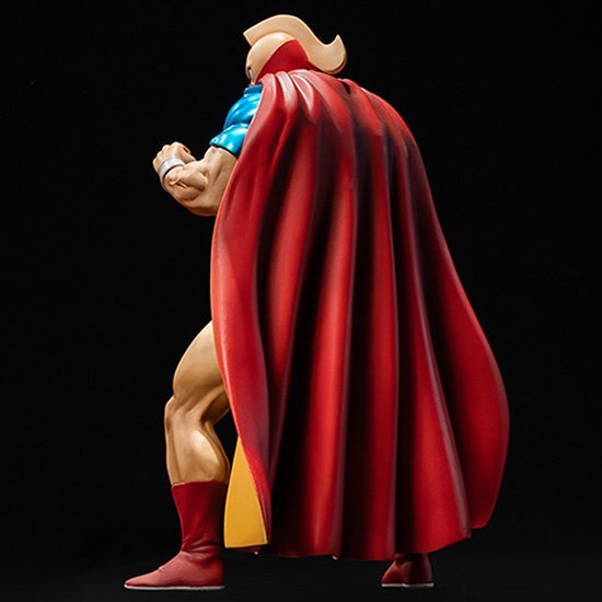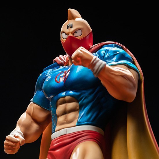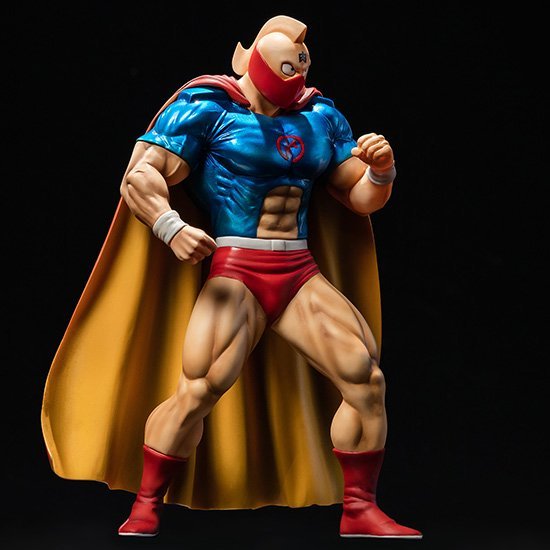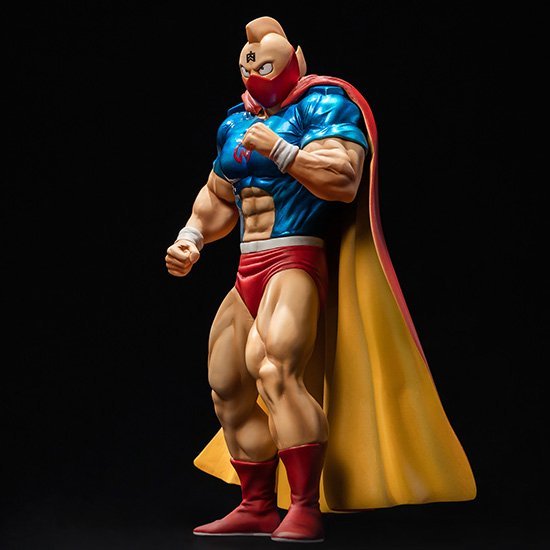 「金肉人 王族服裝ver.」PVC塗裝完成品,尺寸全高約 23 公分,由松浦健先生擔任角色造型原型師,將金肉人回到金肉星、當上第 58 代金肉星大王的造型還原,服裝施以金屬海軍藍增添氣勢,王族戰鬥風格的披風顯現尊貴,細部的皺褶與強壯的肌肉、爆筋等細節都逼真精緻,銳利的眼神讓整體霸氣又充滿生命力!