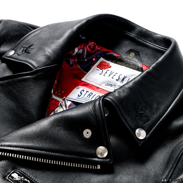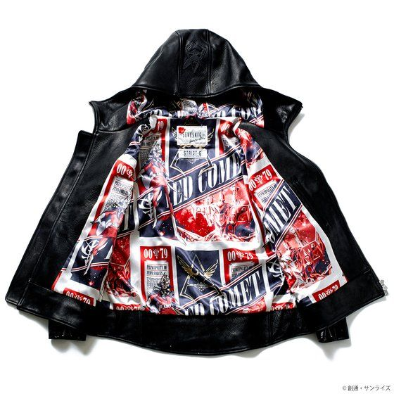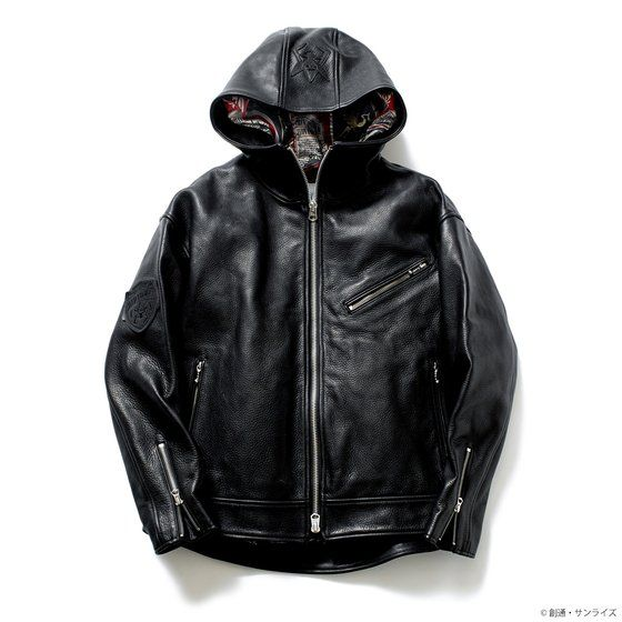 分為 W 騎士皮外套與連帽皮外套兩款,都以夏亞·阿茲納布爾(シャア・アズナブル,Char Aznable)為形象設計,內裡都有精細的圖案放在內襯表布上,配合風格強烈的皮外套,真的只有一個帥字可以形容阿 XD。兩款皆以羊皮打造,柔韌的手感與耐用度絕對是許多喜歡騎士風格又熱愛鋼彈的粉絲不能錯過的。