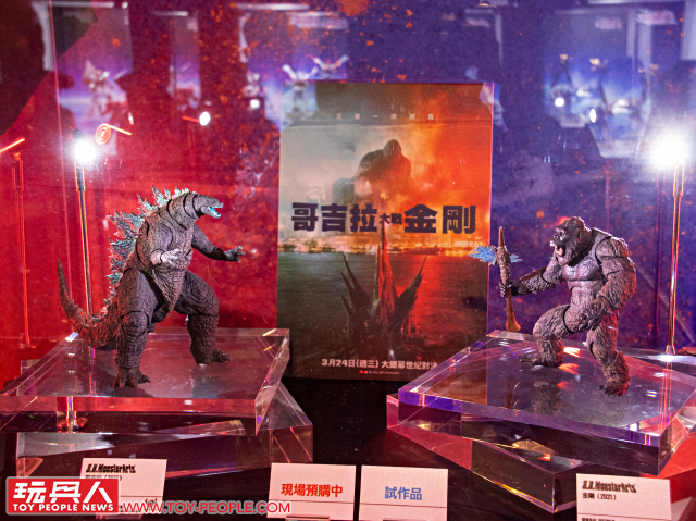 一進場就是首度在台公開的 S.H.MonsterArts 系列「哥吉拉(2021)」、「金剛(2021)」兩大巨獸,怪獸原型師「酒井裕司」大師製作的哥吉拉擁有細緻造型,背鰭塗裝更是令人驚艷,金剛則在頭雕的猙獰表情有著出色表現。