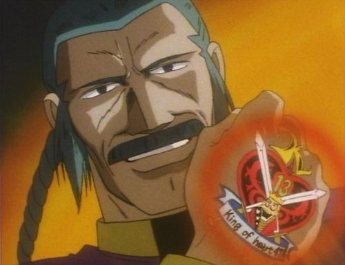 洗牌同盟盟主的「紅心王」(King of Heart),劇中先前為「亞洲天王」東方不敗所有,取得 12 屆武鬥大會優勝後就將這個稱號傳給主角-多門·火州,經典的紅心 13 的標誌相信是不少《機動武鬥傳G GUNDAM》的粉絲都非常熟悉的。