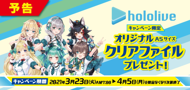 先前日本連鎖超商全家便利商店和韓國食品品牌 Lotte 與 Cover 社旗下 Vtuber 經紀品牌《Hololive》一同推出超商贈品活動,這次將要推出第二彈啦!只要購買三項 Lotte 甜點零食,即可兌換合作的 A5 資料夾。這次更加碼推出其他活動,更多周邊推出吸引 Holo 粉 XD。活動將於 2021 年 3 月 23 日〜4 月 5 日展開。